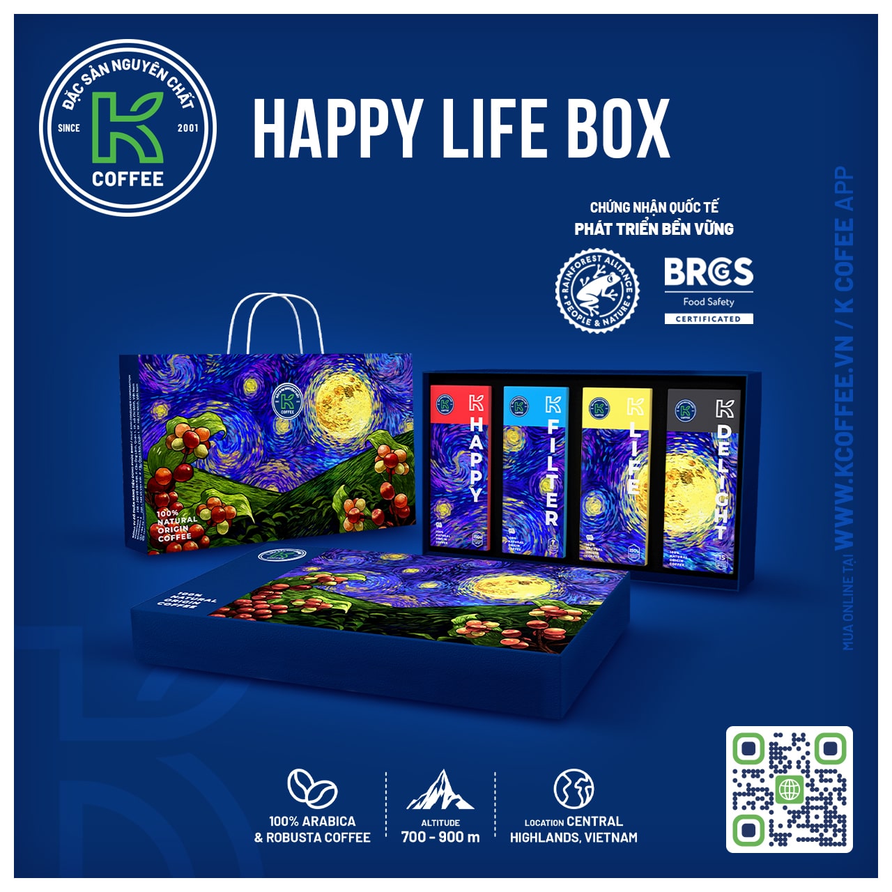 K COFFEE là thương hiệu thuộc Tập đoàn PHÚC SINH - Tập đoàn sản xuất, xuất khẩu Cà phê và Hồ tiêu hàng đầu Việt Nam với doanh thu 6.000 tỷ mỗi năm. PHÚC SINH có quy trình sản xuất khép kín từ vườn, nhà máy đến người tiêu dùng trong nước và quốc tế một chất lượng duy nhất - ONE QUALITY