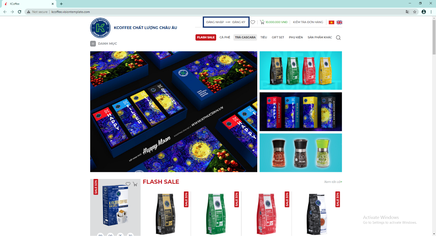 Bước 2: Chọn vào mục Đăng nhập/ Đăng ký ở góc phải màn hình trang web