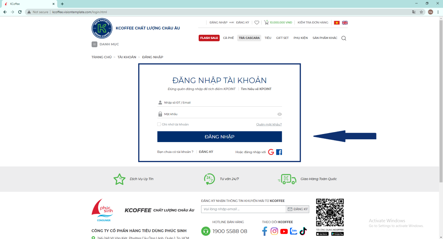 2. Đăng nhập tài khoản KPhucSinh