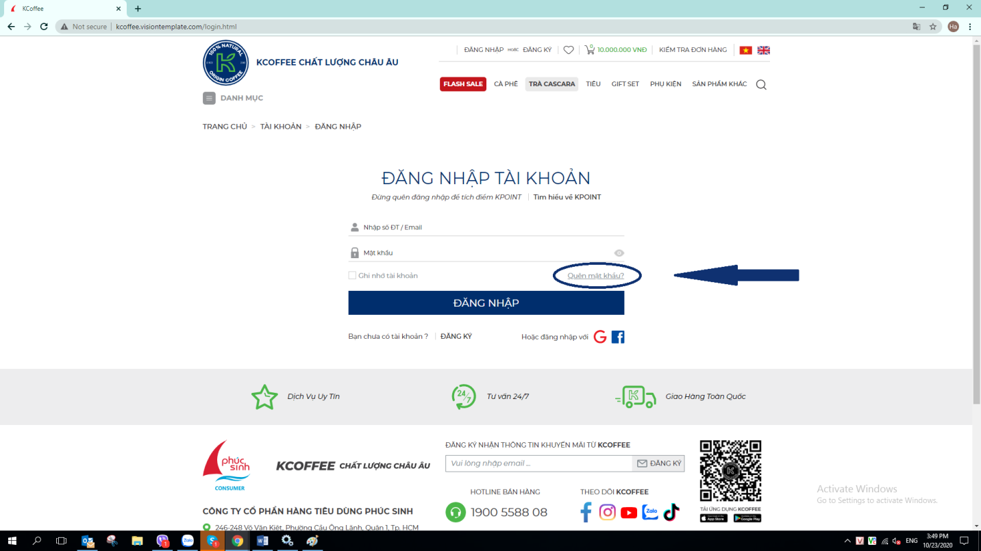 3. Quên mật khẩu đăng nhập KPhucSinh