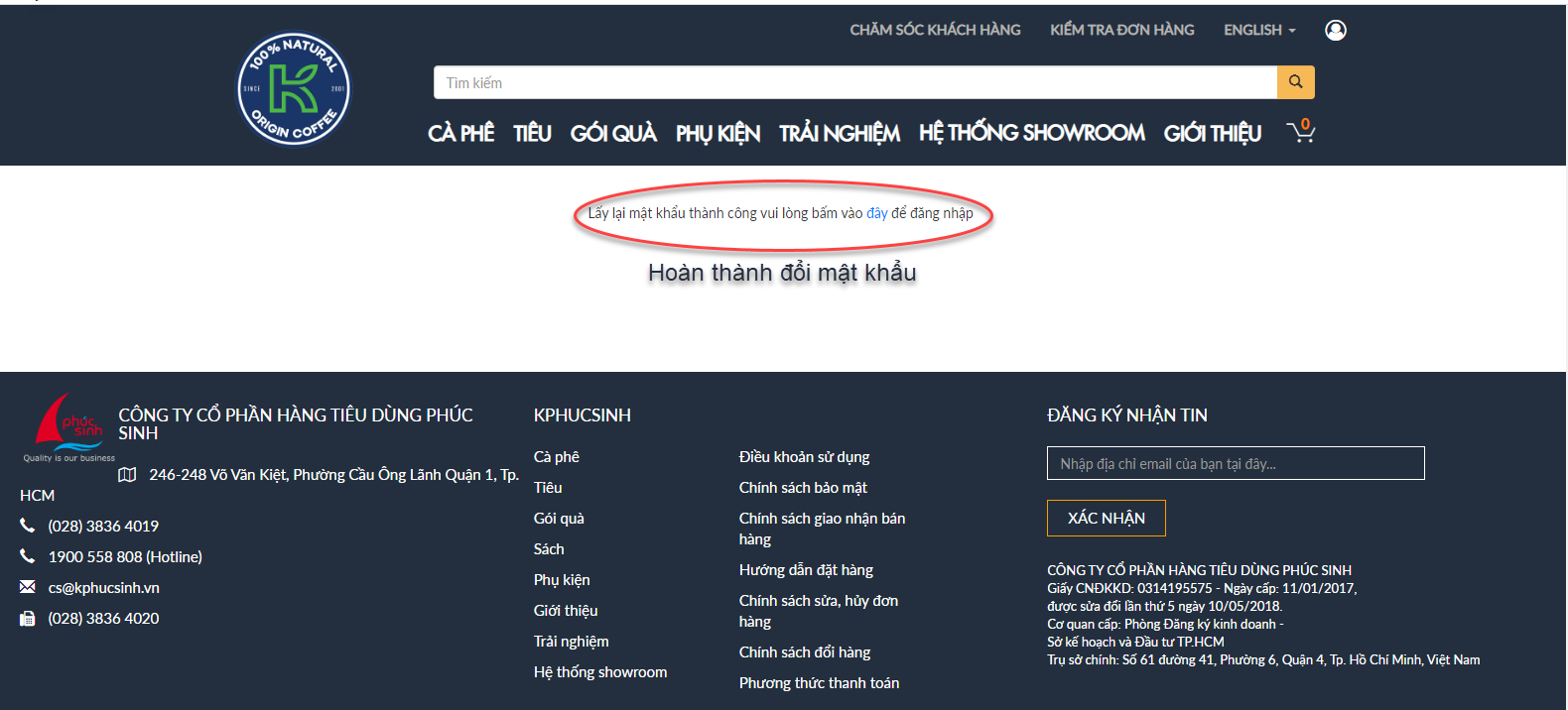 Quý khách đã hoàn thành đổi mật khẩu tài khoản KPhucSinh