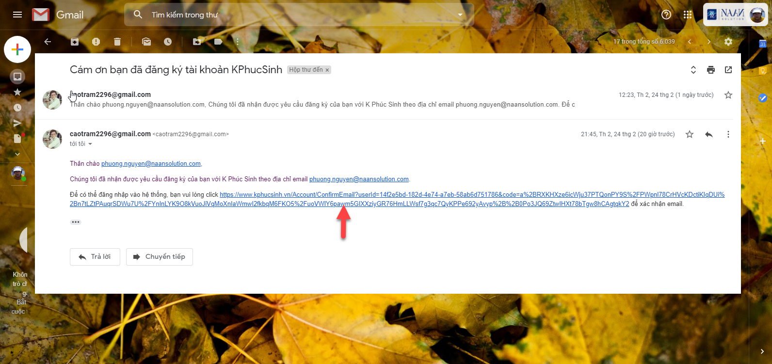 xác nhận và hoàn tất việc tạo tài khoản KPhucSinh mới.