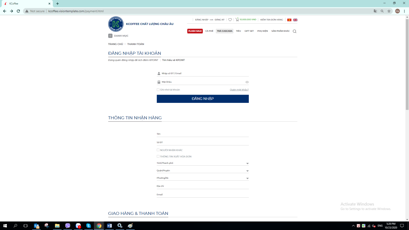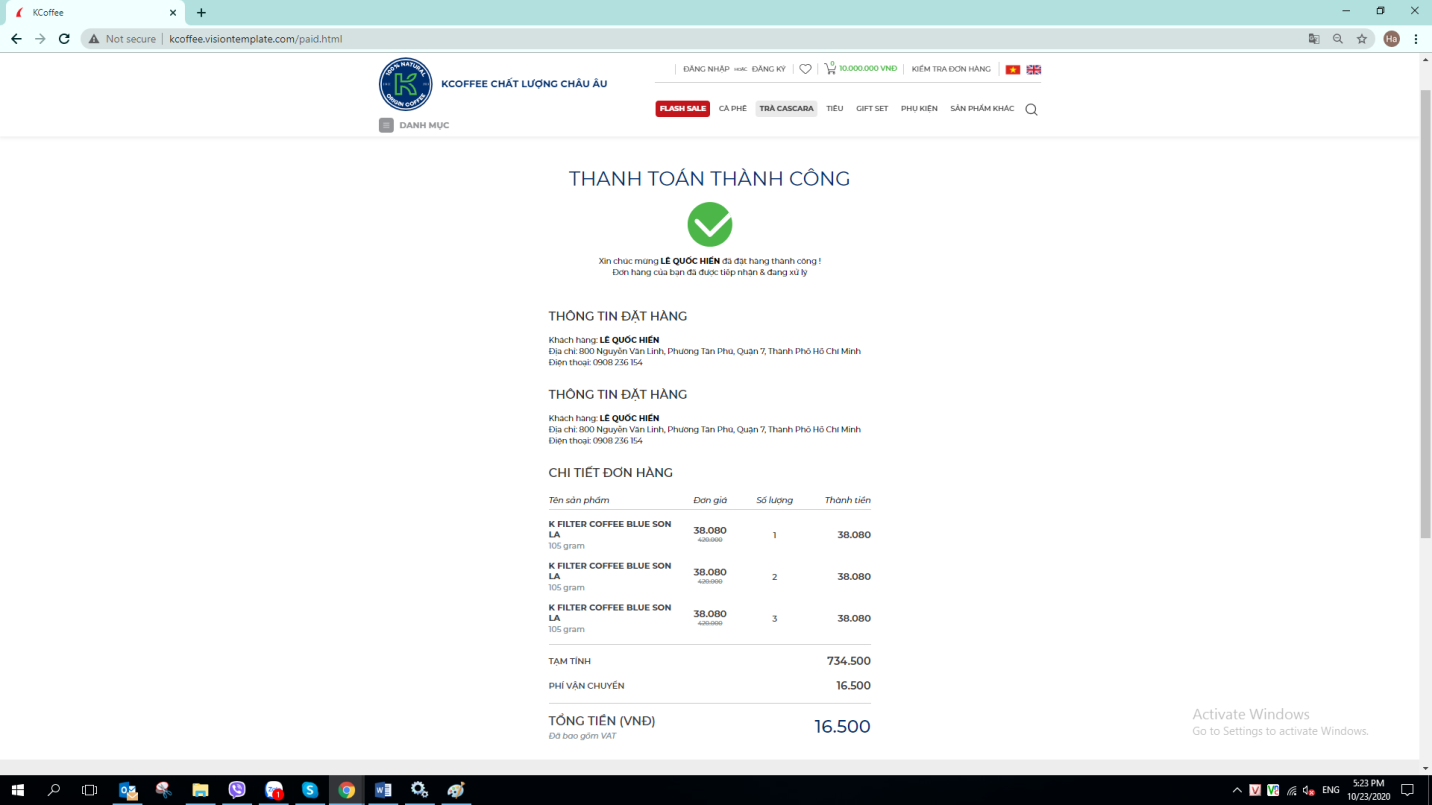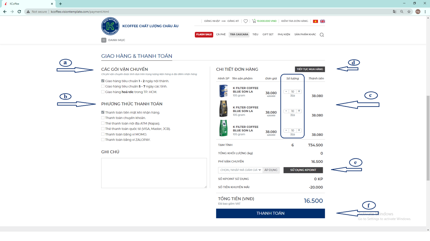 f. Chọn “Thanh Toán” để hoàn tất các bước đặt hàng.