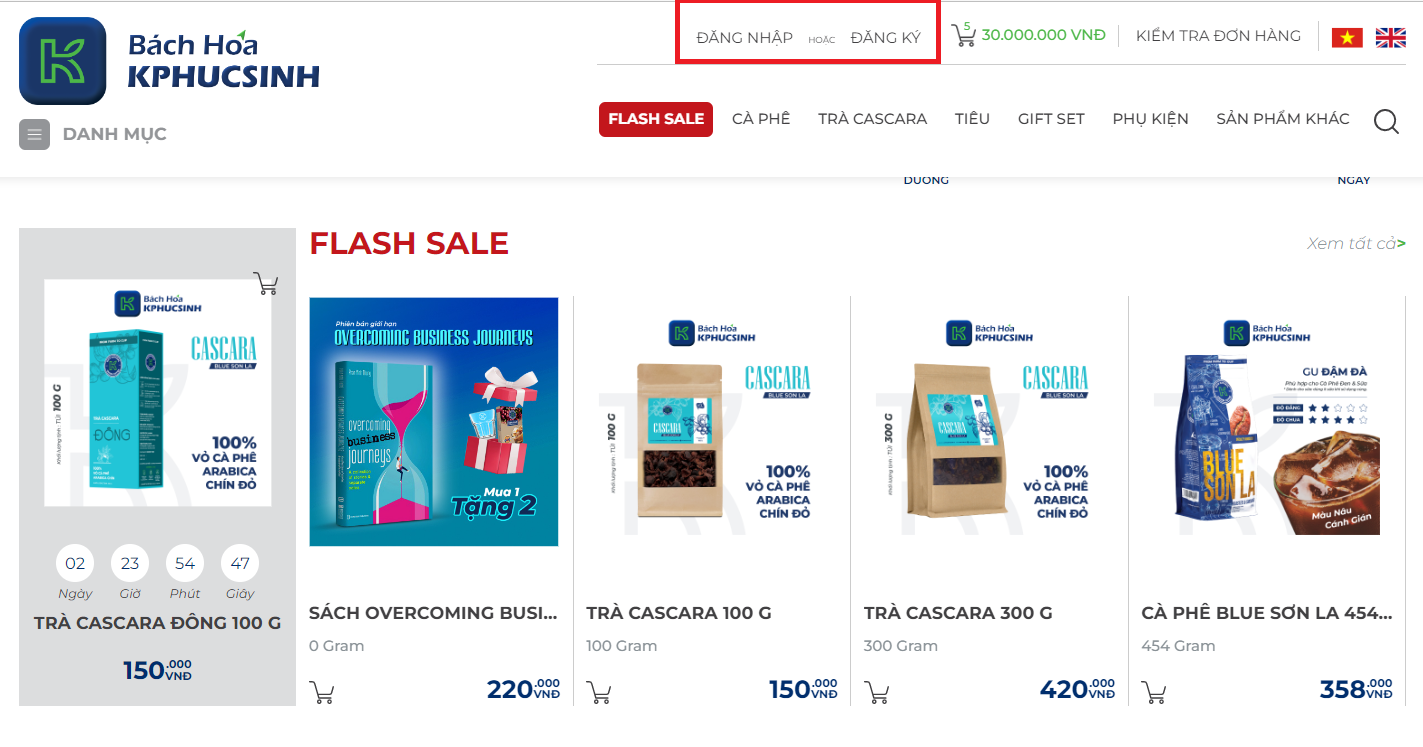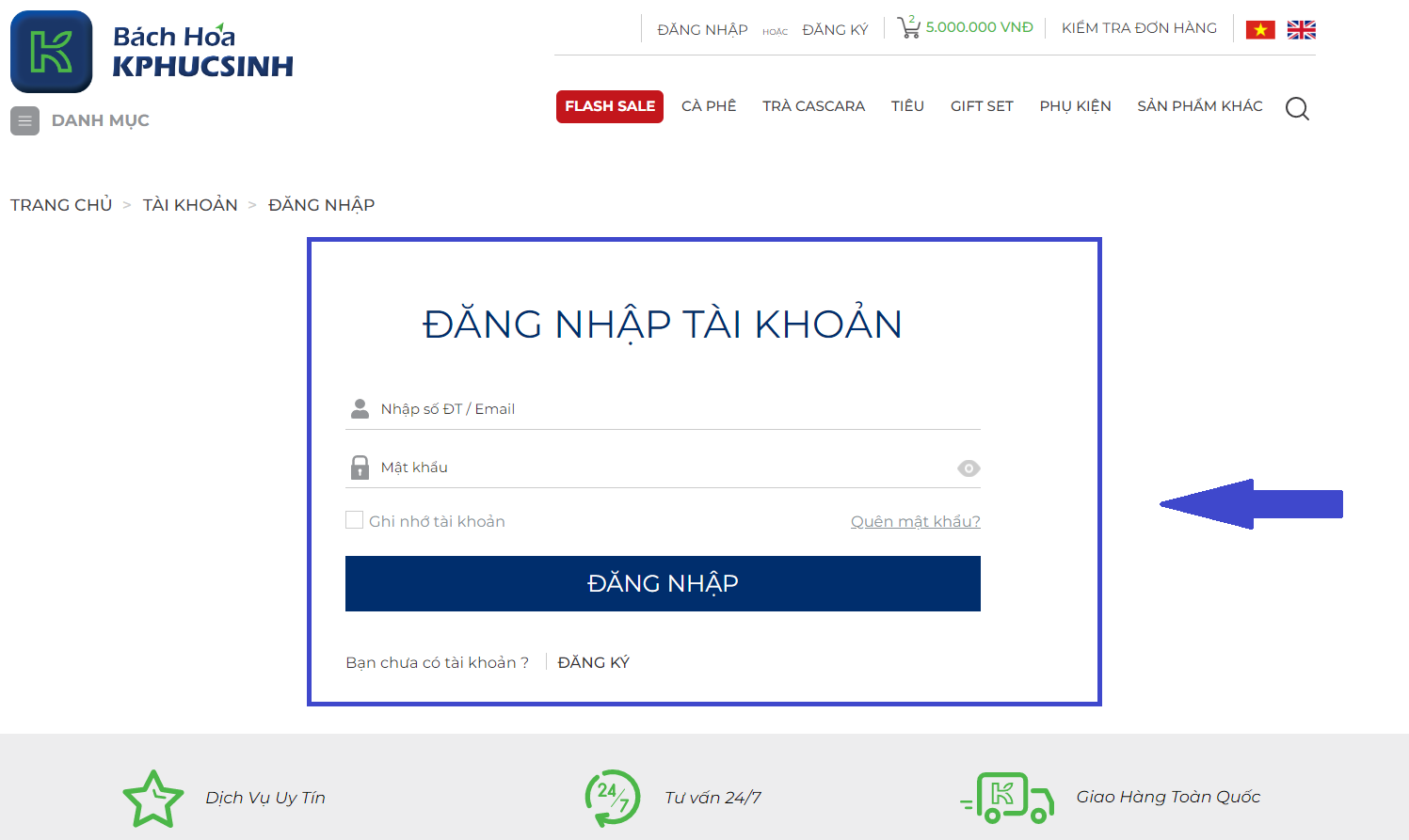 Bước 2: Chọn Đăng nhập vào mục Đăng nhập hoặc Đăng ký ở góc phải màn hình trang web